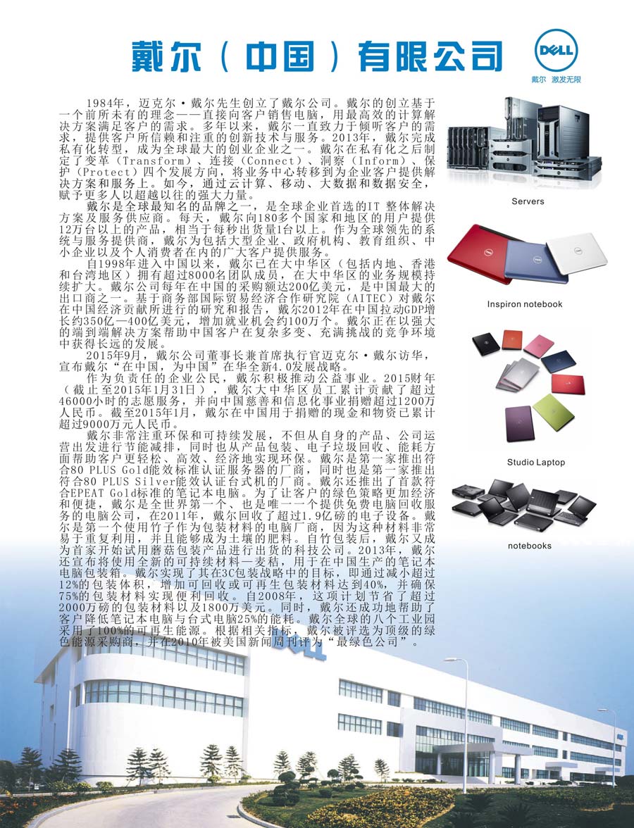 主要產品:DELL服務器、筆記本、臺式機、打印機等