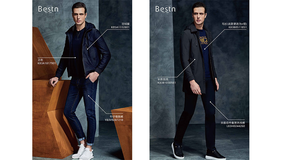 主要產品:“百斯盾”、“Bestn”男女休閑服飾