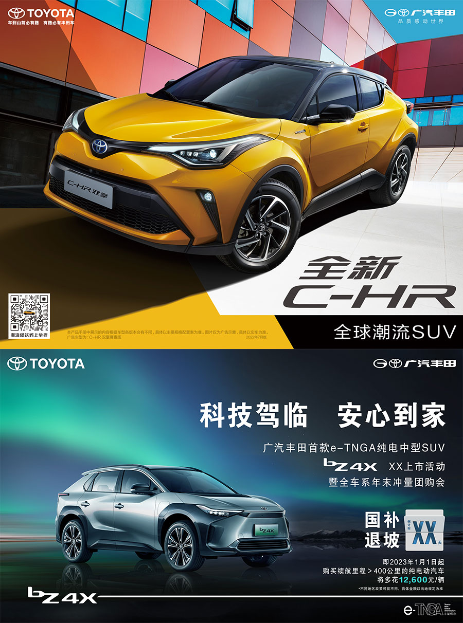 主要產品:bz4X、賽那、漢蘭達、威颯、威蘭達、凱美瑞、凌尚、雷凌、鋒蘭達、Yaris L、C-HR、iA5