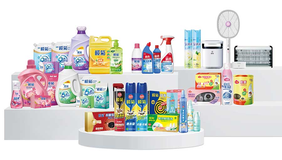 主要產品:欖菊盤式蚊香、電熱蚊香液、驅蚊液、電熱蚊香片、電蚊香加熱器、殺蟲氣霧劑、殺蟑餌劑、滅蚊燈、電蚊拍、洗衣液、洗潔精、洗衣粉、洗衣皂、洗手液、84消毒液、潔廁精(液)、花露水、空氣清新劑等
