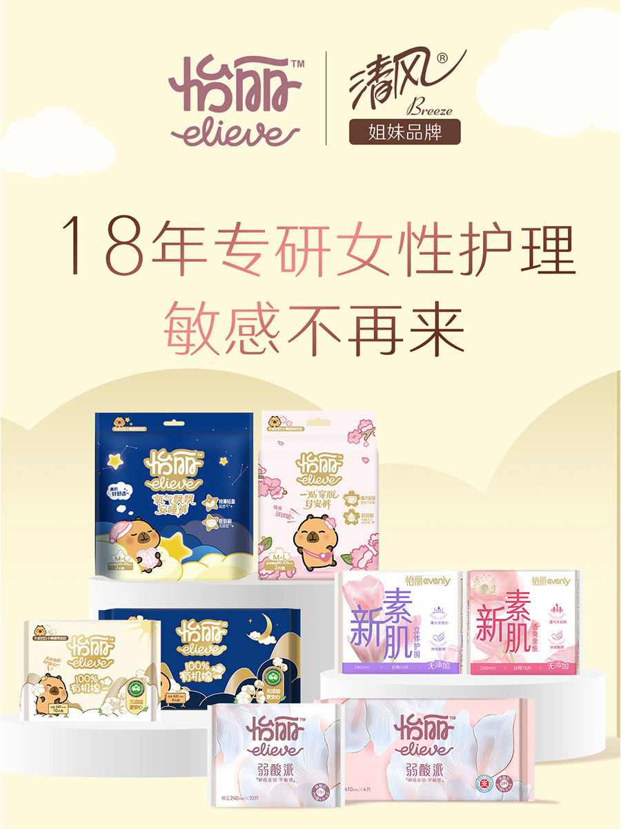 “鉑麗雅”品牌“借助自然的力量”為女性帶來美好的個人美妝護理體驗。“真真”專業舒適型成人護理品牌,主打專業、舒適、極致性價比。“怡麗”以膚感定義舒適,專注衛生巾膚感科技,探索無感舒適體驗。