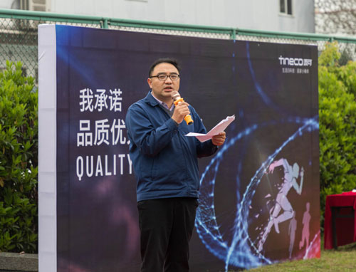 制造中心總監(jiān)劉焱南總發(fā)表演講,他強調(diào),品質(zhì)優(yōu)先是從我們每一個人做起,從我們的思想意識中就認(rèn)識到品質(zhì)的高度重要性,我們要遵守工藝紀(jì)律,嚴(yán)格按照我們標(biāo)準(zhǔn)作業(yè)指導(dǎo)書來進行,每一個步驟嚴(yán)格遵守,使得我們做出來的產(chǎn)品,都是合格品。