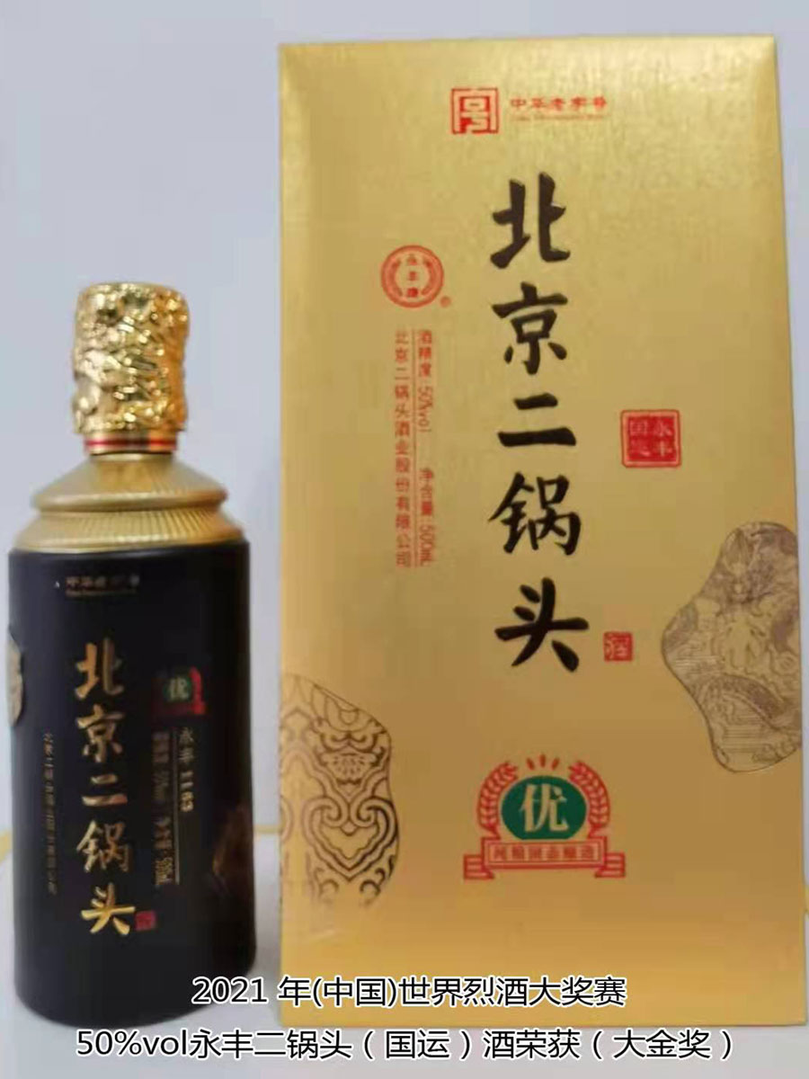 北京二鍋頭酒業(yè)股份有限公司傳承老北京二鍋頭傳統(tǒng)釀造技藝,產(chǎn)品選用優(yōu)質(zhì)高粱為原料,以麩曲為糖化發(fā)酵劑,采用老五甑發(fā)酵法、混蒸混燒、看花接酒、掐頭去尾、長(zhǎng)期儲(chǔ)存、精工勾兌而成。產(chǎn)品多次獲得各種優(yōu)質(zhì)產(chǎn)品稱號(hào),“永豐牌”商標(biāo)2000年度、2004年度、2007年度連續(xù)三屆被北京市工商行政管理局認(rèn)定為北京市著名商標(biāo);2003年9月,“永豐”二鍋頭、京王子酒被評(píng)為北京市優(yōu)秀新產(chǎn)品獎(jiǎng);2004年,被授予“中國(guó)白酒質(zhì)量?jī)?yōu)秀產(chǎn)品”及首都市場(chǎng)“質(zhì)量、信譽(yù)、服務(wù)”優(yōu)秀企業(yè)、優(yōu)質(zhì)產(chǎn)品稱號(hào);2006年11月,被評(píng)為“中國(guó)歷史文化名酒”;2007年12月,被評(píng)為“AAA”級(jí)信用企業(yè),同年榮獲“中國(guó)質(zhì)量過(guò)硬知名品牌”;2011年5月,“永豐”牌被中華人民共和國(guó)商務(wù)部評(píng)為“中華老字號(hào)”;2021年10月,在2021國(guó)際酒類(中國(guó))大獎(jiǎng)賽中,北京二鍋頭酒業(yè)股份有限公司共獲得五枚金牌,其中38%vol永豐酒坊老字號(hào)酒、46%vol永豐品鑒酒、52%vol醉流霞瓷瓶酒、50%vol永豐粱大俠(典藏)酒四款產(chǎn)品榮獲“金獎(jiǎng)”,50%vol永豐二鍋頭(國(guó)運(yùn))酒榮獲“大金獎(jiǎng)”。此次大獎(jiǎng)賽北京二鍋頭酒業(yè)股份有限公司榮登“金獎(jiǎng)”之首,得到了國(guó)際酒類(中國(guó))大獎(jiǎng)賽組委會(huì)及全國(guó)頂級(jí)評(píng)酒大師、酒業(yè)泰斗專家們的一致好評(píng),肯定了北京二鍋頭酒業(yè)股份有限公司專業(yè)技術(shù)人員高超的技藝和敬業(yè)的工匠精神。