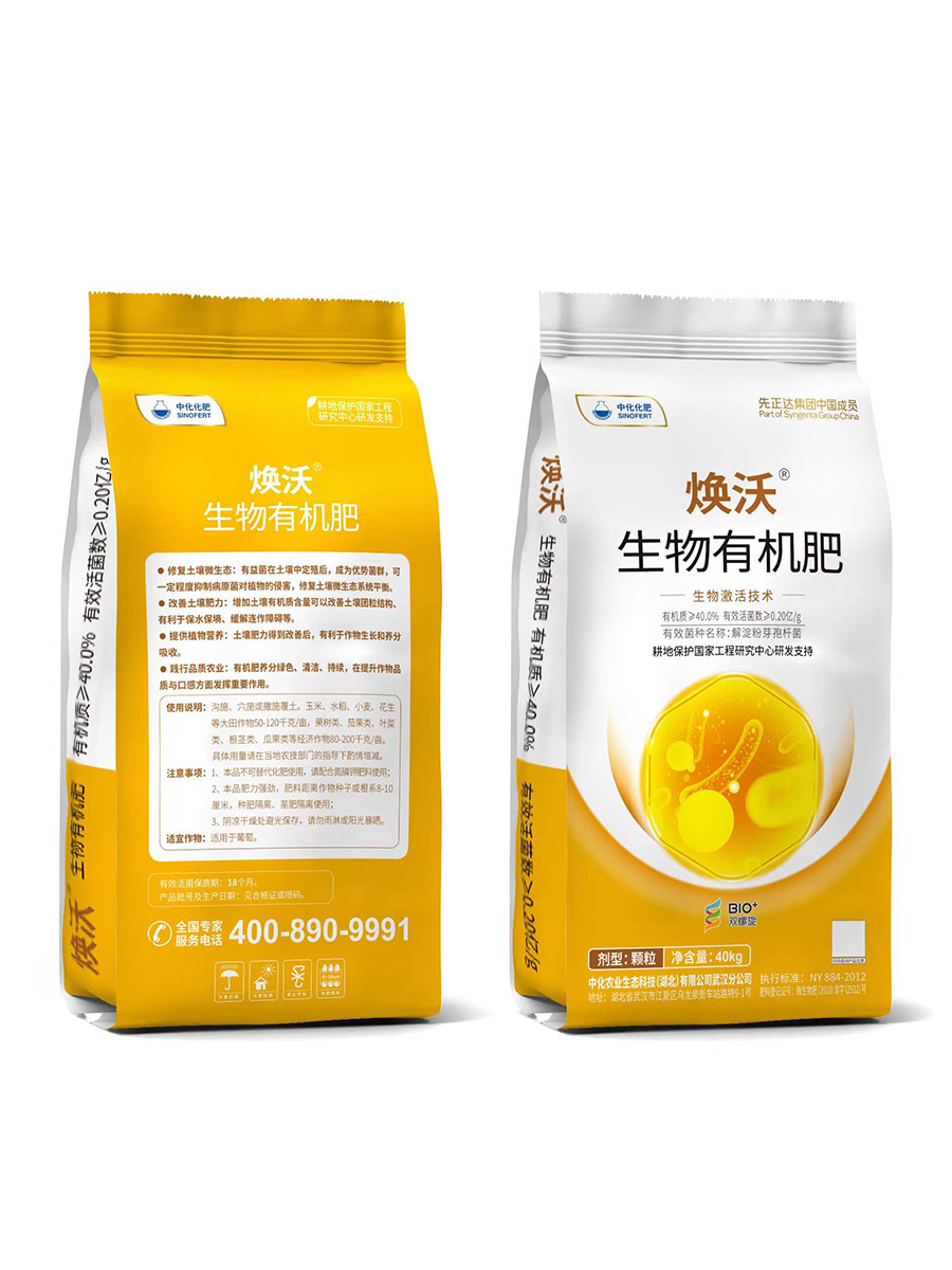 煥沃生物有機肥,選用優質高效有機原料,修復土壤微生態,提高肥料利用率,采用耕地保護國家工程研究中心生物激活技術,微生物代謝產物刺激作物生長,促進作物生根、出苗,提高作物的抗逆性,改善作物品質風味。