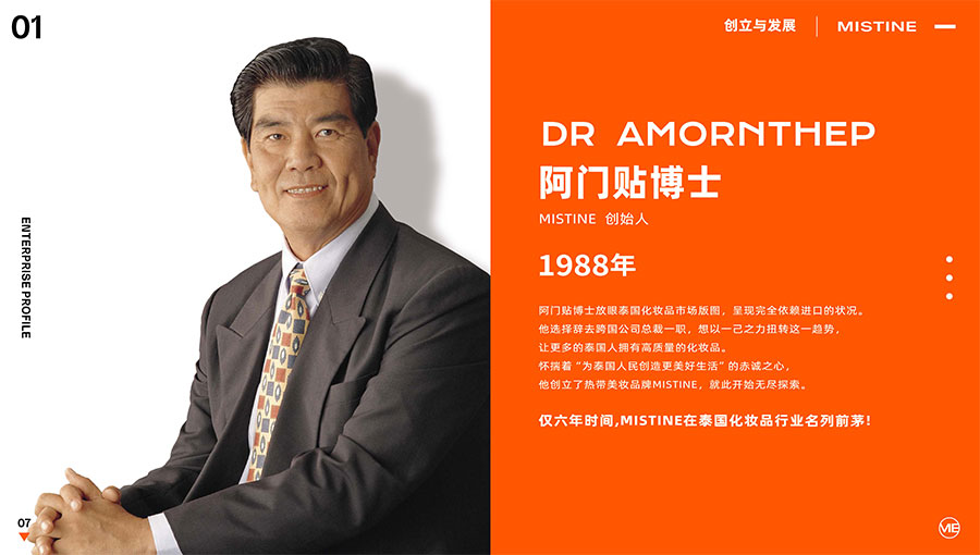 栢特薇(深圳)化妝品有限公司是專業從事化妝品研發、生產、運營、銷售等業務的多元化品牌公司,業務內容覆蓋線上線下全渠道。旗下美妝品牌Mistine蜜絲婷,由阿門貼博士于1988年創立,秉承著“讓全球女性可以體驗更高品質化妝品的初心”深耕彩妝護膚領域超35年,專業底蘊深厚。