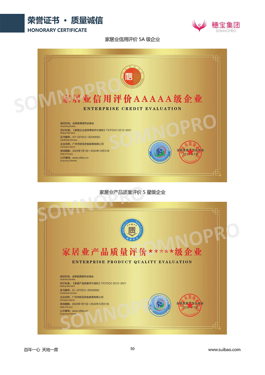 半個世紀的付出,穗寶集團在深度睡眠領域收獲非凡成就,贏得業界與社會的一致贊譽。作為大家居行業的品質倡導者,穗寶集團不斷創新,豐富品牌實力,致力推動中國床墊產業發展。