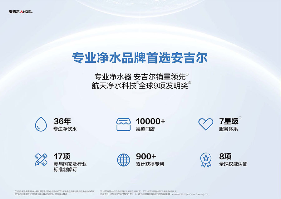 37年來,安吉爾始終堅持科技創新,不斷引領行業技術升級。參與17項國家及行業標準制修訂,累計獲得900余項專利,建立4大水質實驗室。2023年,安吉爾憑實力斬獲全球9項發明獎,包含3項日內瓦國際發明展獎項,6項亞洲創新發明展獎項。
