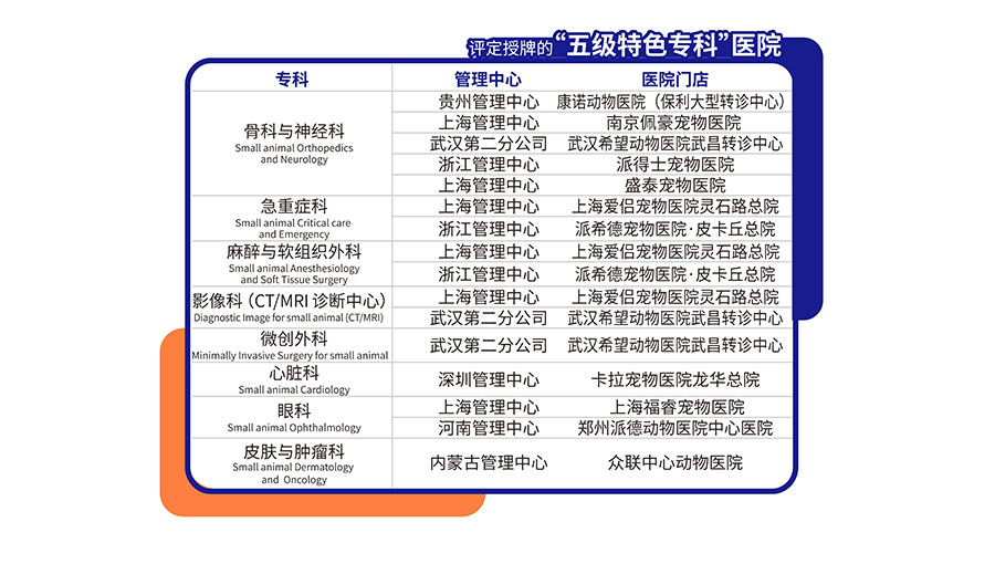 為合理利用醫療資源,提高醫院科學管理水平與醫療服務質量,保障伴侶動物的健康,集團進一步調整與健全三級醫療預防體系,建立醫院評審制度,根據醫院的功能定位、診療任務、設施條件、學科發展建設、醫療服務質量和科學管理等方面的綜合水平,對集團內所有醫院進行科學分級管理。