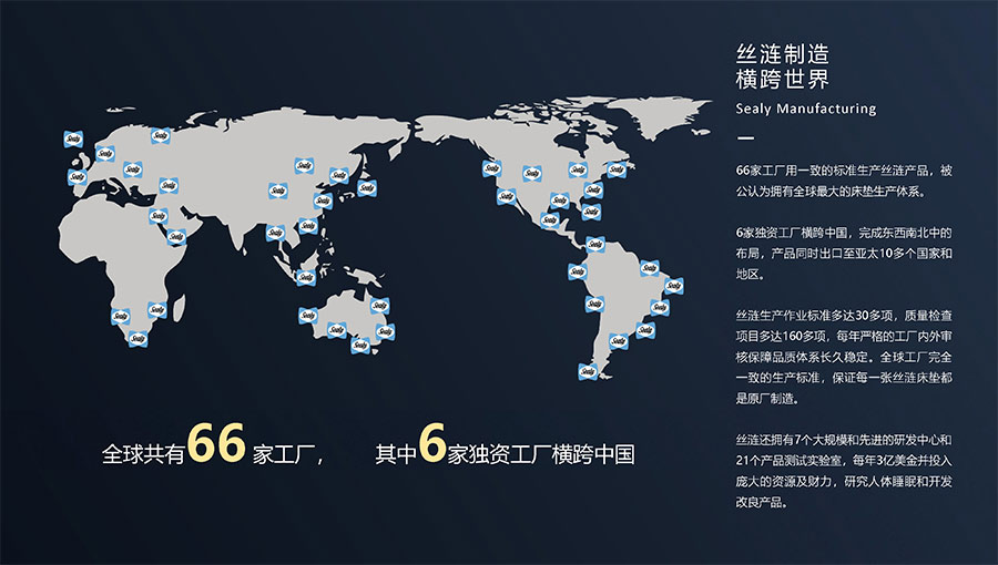 66家工廠用一致的標準生產絲漣產品,被公認為擁有全球最大的床墊生產體系。