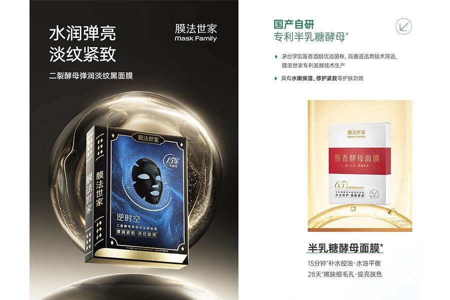 主要產品:膜法世家逆時空二裂酵母彈潤緊致黑面膜、膜法世家逆時空二裂酵母彈潤淡紋黑面膜、膜法世家紫草泥清潔面膜、膜法世家綠豆清潔泥膜(經典版)、膜法世家綠豆清潔泥膜(祛痘版)、二裂酵母彈潤緊致精華液