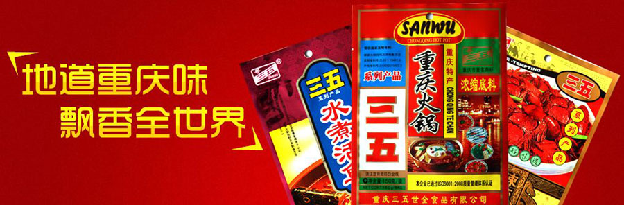 公司生產(chǎn)的“三五”牌火鍋?zhàn)袅鲜怯枚嗄甑膶?shí)踐經(jīng)驗(yàn),科學(xué)配方反復(fù)研究精制而成,取得國(guó)家發(fā)明專(zhuān)利(發(fā)明專(zhuān)利號(hào):ZL9311544.3 外觀(guān)專(zhuān)利號(hào):200630011602.3)。1995、1998、2001、2004、2007年被重慶市政府授予“重慶名牌”產(chǎn)品稱(chēng)號(hào)。1998、2001、2004、2007年被重慶市工商局評(píng)為重慶市著名商標(biāo)。公司產(chǎn)品既具有重慶獨(dú)特的麻、辣、鮮、香風(fēng)味,又有甜而不膩的濃郁廣東風(fēng)味。公司產(chǎn)品可用于餐飲業(yè)和家庭火鍋制作,也可用于鹵菜、炒菜、面食、涼菜等多種食物制作。