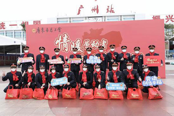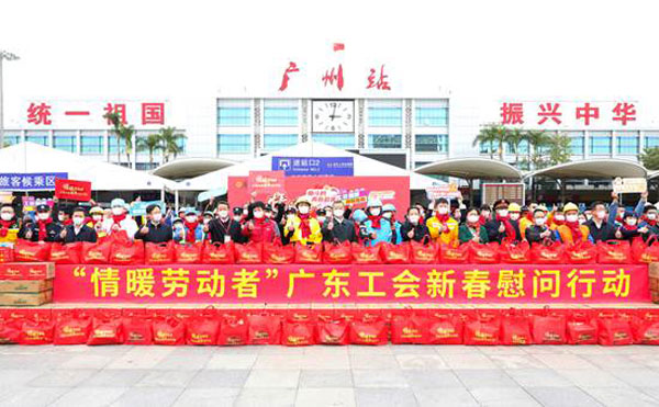 省人大常委會黨組成員、省總工會主席呂業(yè)升出席慰問活動并向廣大勞動者致以親切問候和新春祝福。省總工會黨組書記、常務(wù)副主席陳偉東,省總工會黨組成員、副主席杜玲,省總工會副主席(兼職)、廣州市人大常委會副主任、市總工會黨組書記、主席唐航浩等代表廣東工會向慰問現(xiàn)場的網(wǎng)約配送員、環(huán)衛(wèi)工人、建筑工人以及保障春運(yùn)的保安員、醫(yī)務(wù)人員、公安干警、鐵路客運(yùn)服務(wù)人員等職工代表送上新春慰問大禮包。廣州市總工會及越秀區(qū)總工會相關(guān)領(lǐng)導(dǎo)參加了慰問活動。