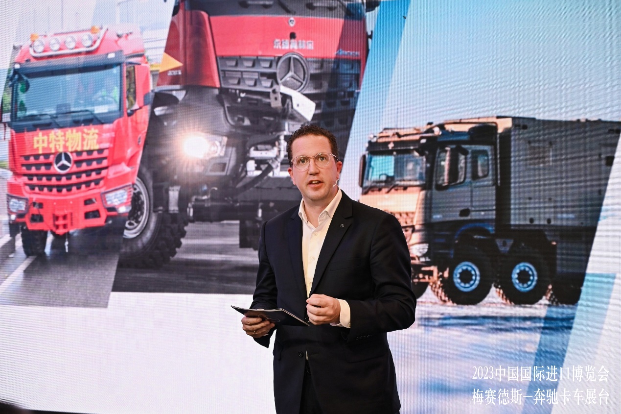 秦坦介紹首次亮相的梅賽德斯-奔馳進口卡車全系產品