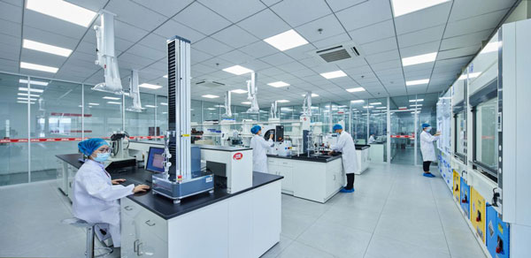 據了解,除了通過高度自動化、智能化的生產包裝設備確保每一根辣條的高質量生產落地外,一根辣條的出產還需要在衛龍內部經過100多項檢測,而這一切就發生在衛龍研發中心。