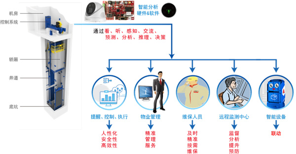 愛登堡人工智能綠色曳引驅動乘客電梯通過搭載先進傳感器、控制器、執行器等裝置,結合信息通信、互聯網、大數據、云計算、傳感檢測等新技術,具備與人類智能(視覺、聽覺、感知、決策、交互、語言、執行)相關的功能。