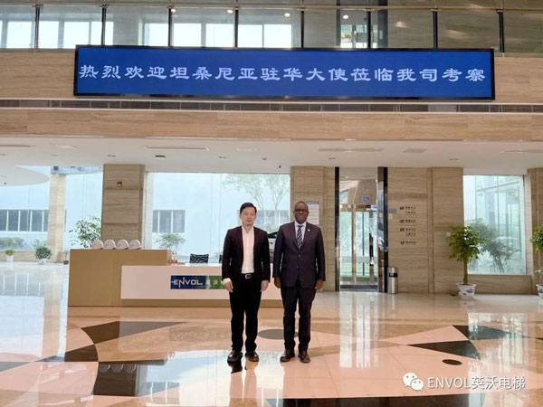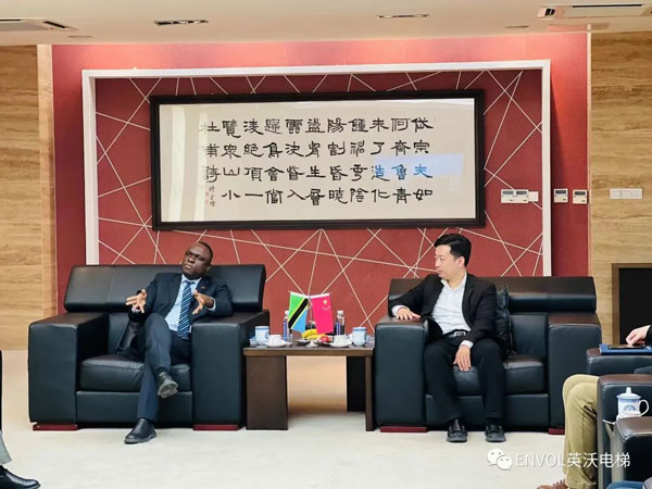 2023年 3月6 日,坦桑尼亞駐華大使H. E. Mbelwa Kairuki(H ·E ·姆貝爾瓦 ·凱魯基)先生一行訪問英沃電梯有限公司,董事長張力對凱魯基大使來訪表示熱烈歡迎,并介紹了英沃電梯發展的最新情況,雙方就深化合作進行了交流探討。