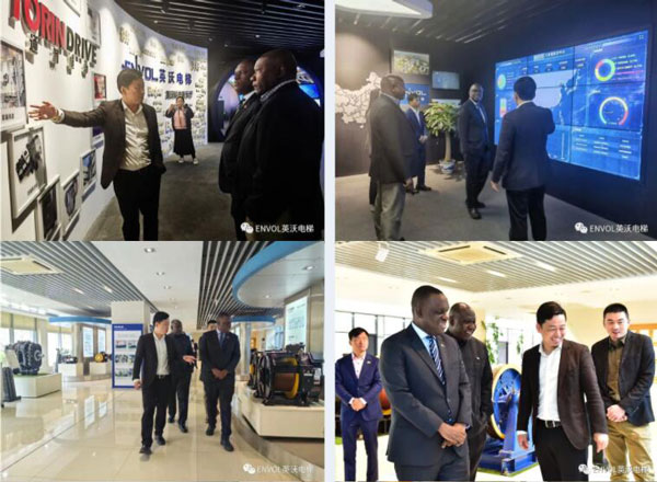 凱魯基大使一行興致勃勃地參觀了英沃電梯展廳、整梯產線、通潤總部研發中心,對英沃電梯的設計、研發、生產能力表示稱贊。