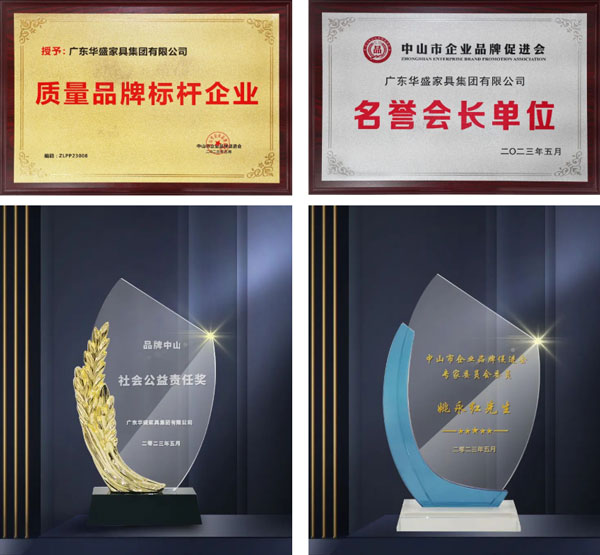 華盛家具集團榮獲 “質量品牌標桿企業(yè)”、“品牌中山社會公益責任獎”等榮譽稱號