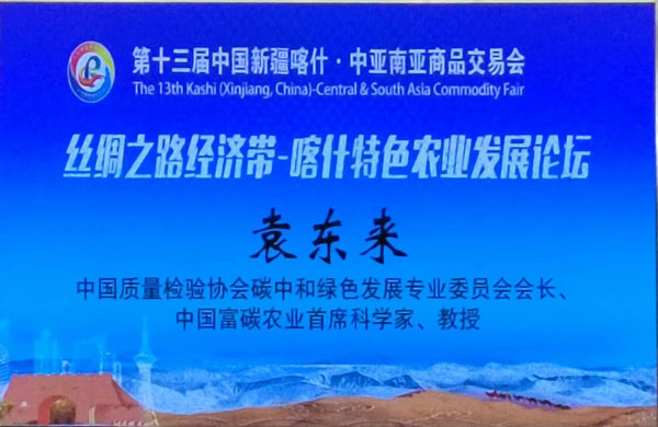 2023年6月22日,第十三屆中國新疆喀什中亞南亞商品交易會主題活動“絲綢之路經濟帶——喀什特色農業發展論壇”在喀什市喀什賓館召開。中國質量檢驗協會碳中和綠色發展專業委員會會長、中國富碳農業首席科學家袁東來教授應邀在論壇上發表了以《美麗喀什 “碳”索未來》為主題的演講。