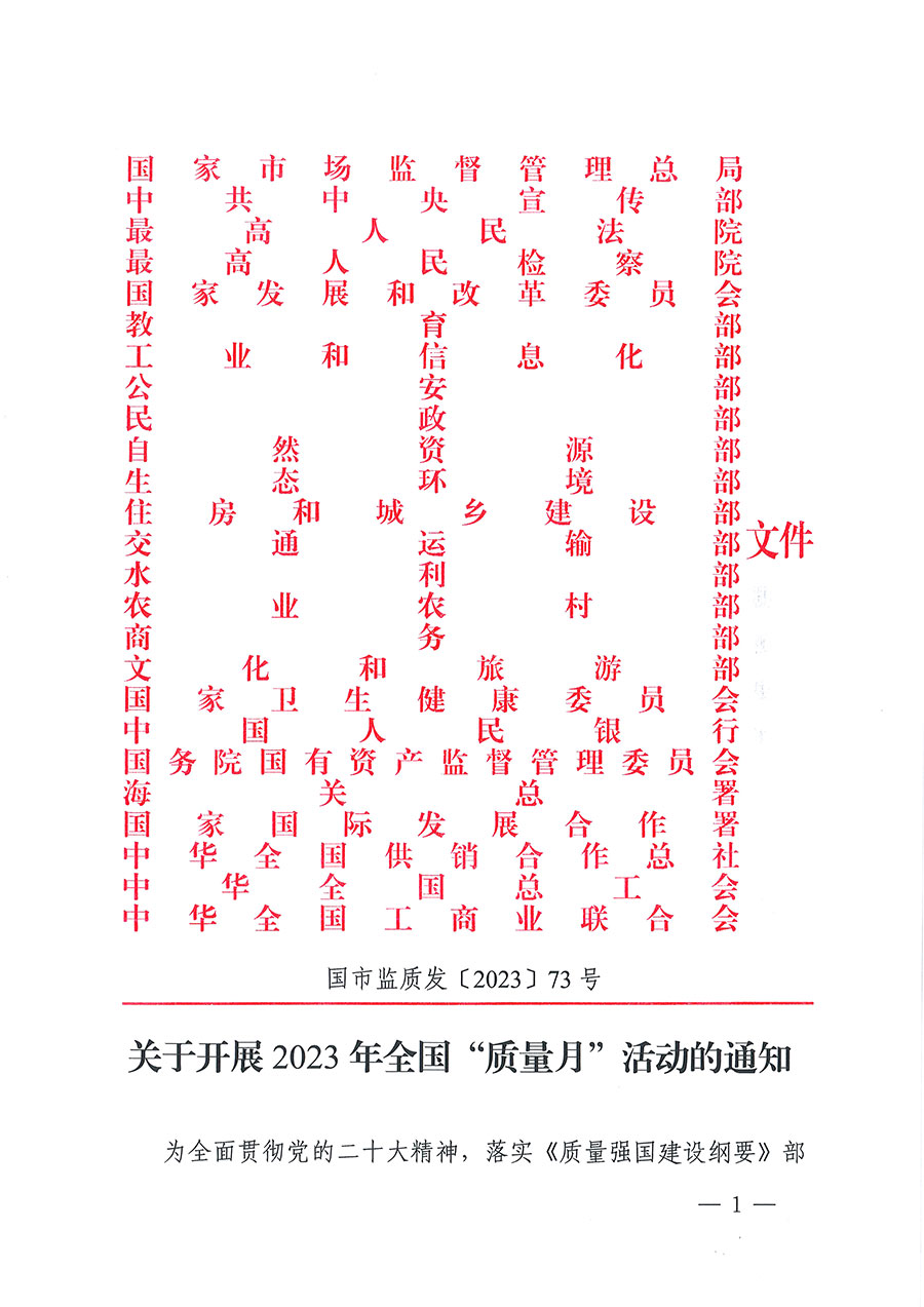 市場監(jiān)管總局聯(lián)合中央宣傳部、最高人民法院、最高人民檢察院、國家發(fā)展改革委、教育部、科技部等25個(gè)部門定于2023年9月聯(lián)合開展全國“質(zhì)量月”活動(dòng)。圍繞“增強(qiáng)質(zhì)量意識(shí) 推進(jìn)高質(zhì)量發(fā)展”的主題,各部門將在質(zhì)量月期間開展多項(xiàng)活動(dòng):中央宣傳部結(jié)合“劍網(wǎng)2023”專項(xiàng)行動(dòng)加大網(wǎng)絡(luò)侵權(quán)盜版打擊力度;最高人民法院將發(fā)布一批食品藥品安全刑事審判典型案例;最高人民檢察院依法懲治侵權(quán)假冒犯罪,開展危害食品藥品安全犯罪案件辦理專題培訓(xùn),發(fā)布知識(shí)產(chǎn)權(quán)檢察綜合保護(hù)指導(dǎo)性案例;工業(yè)和信息化部組織開展全國質(zhì)量標(biāo)桿經(jīng)驗(yàn)交流活動(dòng),舉辦“中國制造”品牌故事大賽;民政部結(jié)合“養(yǎng)老服務(wù)監(jiān)管效能提升年”活動(dòng),組織開展民政領(lǐng)域相關(guān)標(biāo)準(zhǔn)宣貫工作;自然資源部聯(lián)合市場監(jiān)管總局推動(dòng)開展2023年自然資源檢驗(yàn)檢測機(jī)構(gòu)能力驗(yàn)證工作和“雙隨機(jī)、一公開”監(jiān)督檢查工作,開展重要標(biāo)準(zhǔn)宣貫。市場監(jiān)管總局將舉辦限制商品過度包裝宣傳發(fā)布活動(dòng),開展“計(jì)量服務(wù)中小企業(yè)行”,組織“全國檢驗(yàn)檢測機(jī)構(gòu)開放日”活動(dòng),圍繞綠色產(chǎn)品認(rèn)證、有機(jī)產(chǎn)品認(rèn)證開展相關(guān)宣傳周活動(dòng)。
