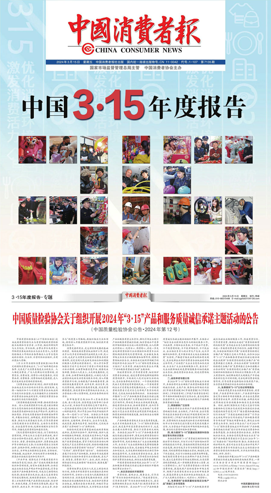 中國消費者報:中國質量檢驗協會關于組織開展2024年“3·15”產品和服務質量誠信承諾主題活動的公告