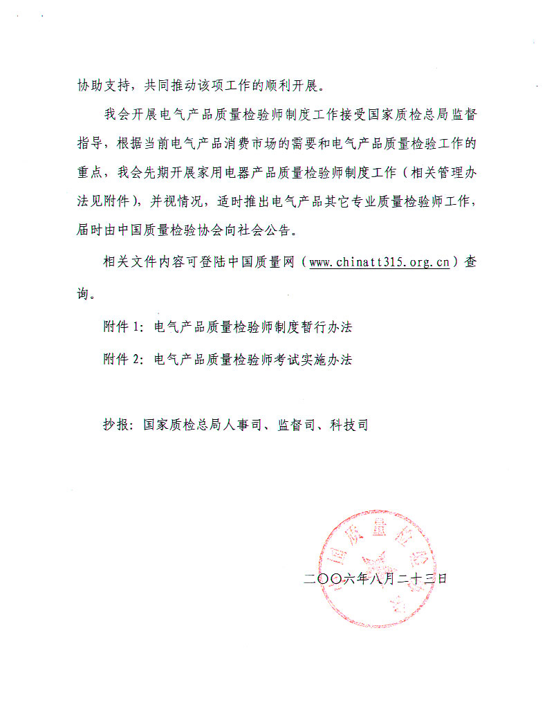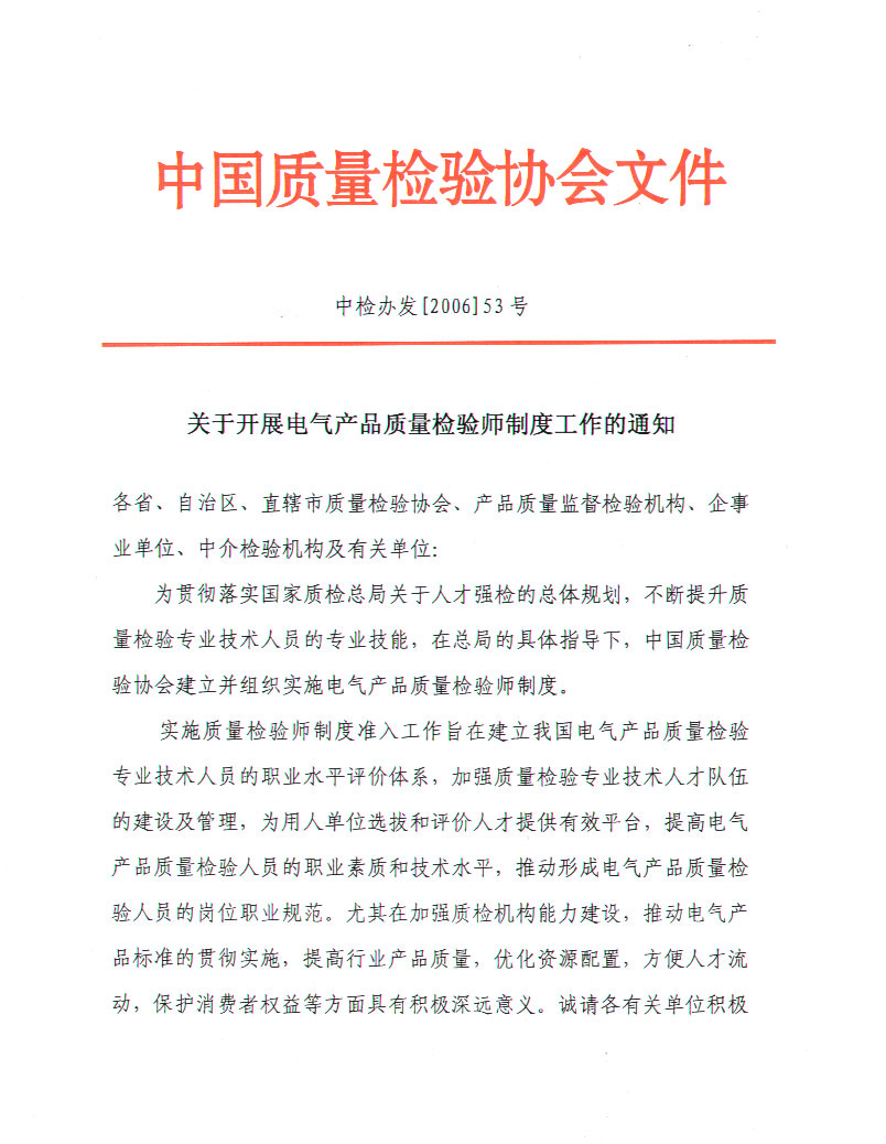 關于開展電氣產品質量檢驗師制度工作的通知